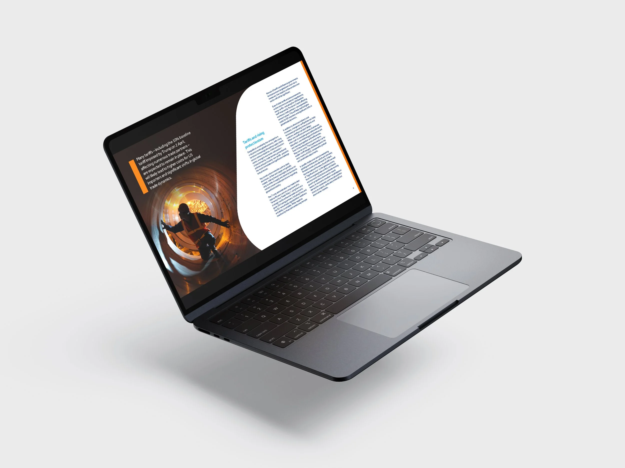By developing a modular 8-column grid system specifically for a 16:9 landscape format, I created a versatile template that maintains strict brand compliance while offering the flexibility to vary layouts of photography, data and columns. The result is a professional, authoritative series of "Sector Resilience Reports" that empowers customers with clear digestible information, to help stay informed.